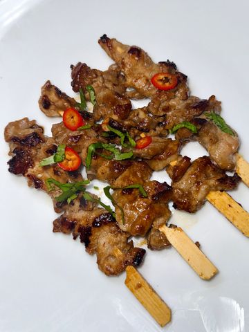 Juicy, tender strips of pork marinated in a fragrant blend of garlic, coriander root, white pepper and sweet soy, grilled over charcoal for that iconic smoky aroma. Each skewer is caramelised to perfection, balancing savoury, sweet Salty and slightly smoky flavours just like the street stalls of Bangkok. Also available in Lamb, Beef and Chicken.